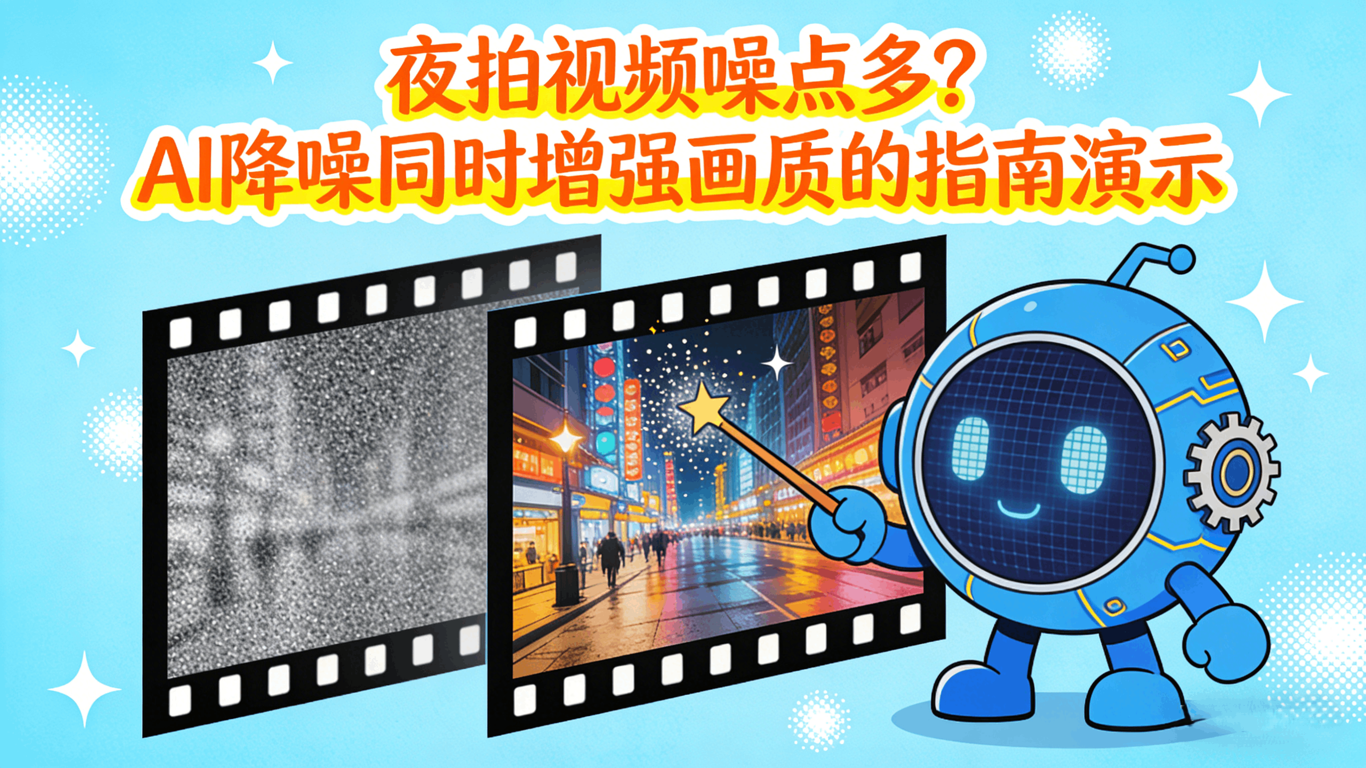 夜拍视频噪点多?AI降噪同时增强画质的指南演示